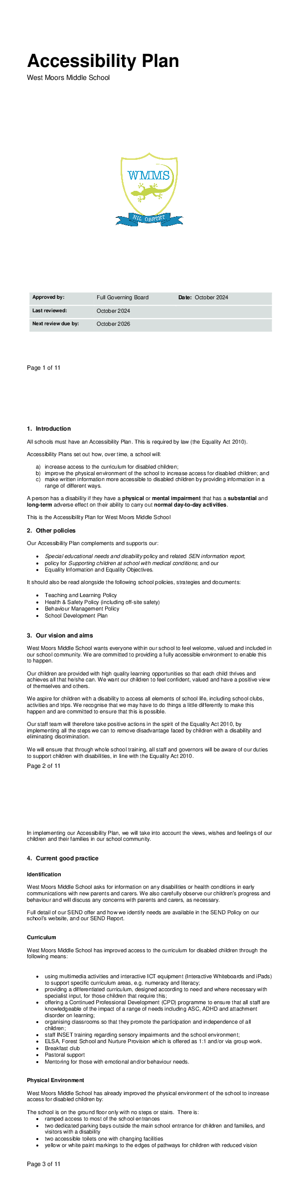 This Accessibility Plan is drawn up in compliance with current legislation and requirements as specified in Schedule 10, relating to Disability, of the Equality Act 2010. We are committed to providing an accessible environment which values and includes all pupils, staff, parents and visitors regardless of their education, physical, sensory, social, spiritual, emotional and cultural needs. In addition, we are committed to challenging negative attitudes about disability and accessibility and to developing a culture of awareness, tolerance and inclusion.