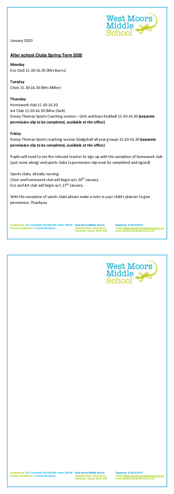After School club Spring 2020
