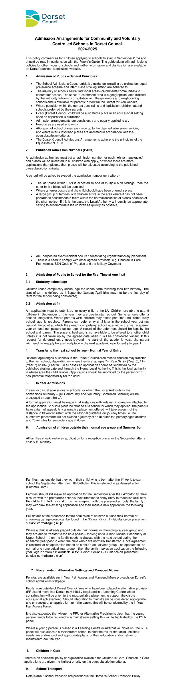 Dorset Council - Admissions Arrangements for Community and VC Schools
