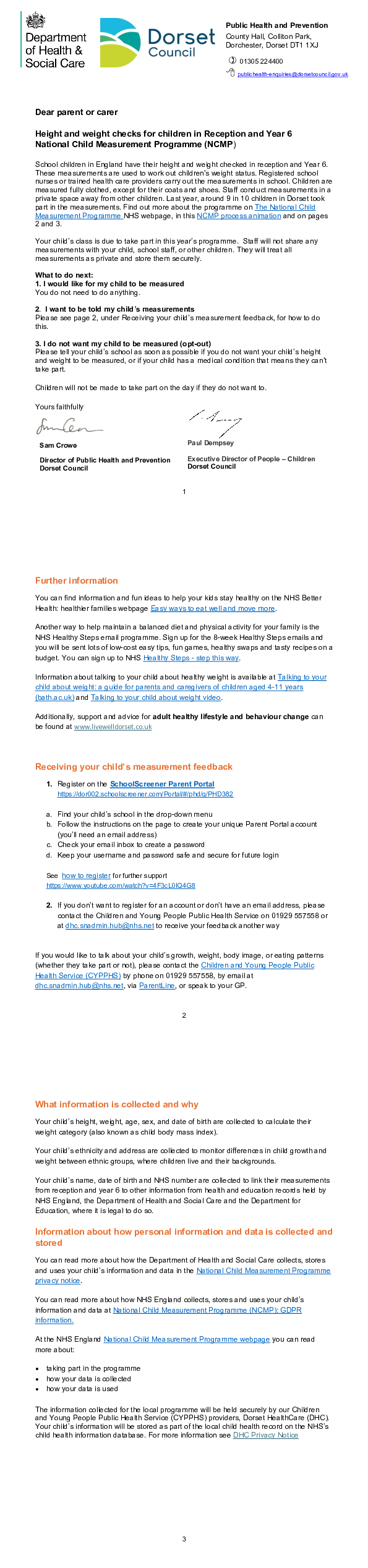 DORSET Parent and Carer NCMP premeasurement information 20252026
