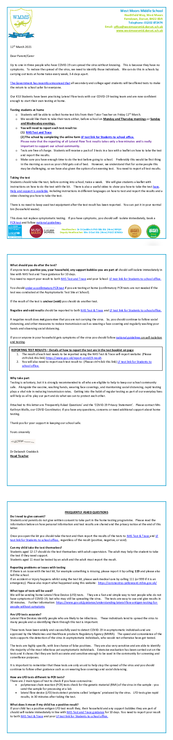 Letter to KS3 parents 12.03.21 covid testing instructions