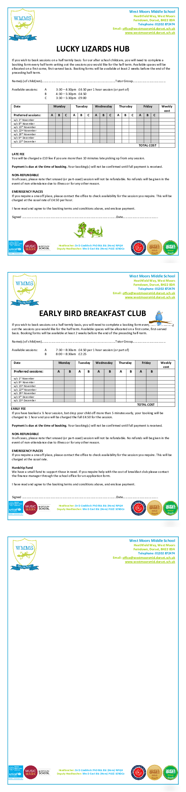 Lucky Lizards- early booking form for Autumn 2
