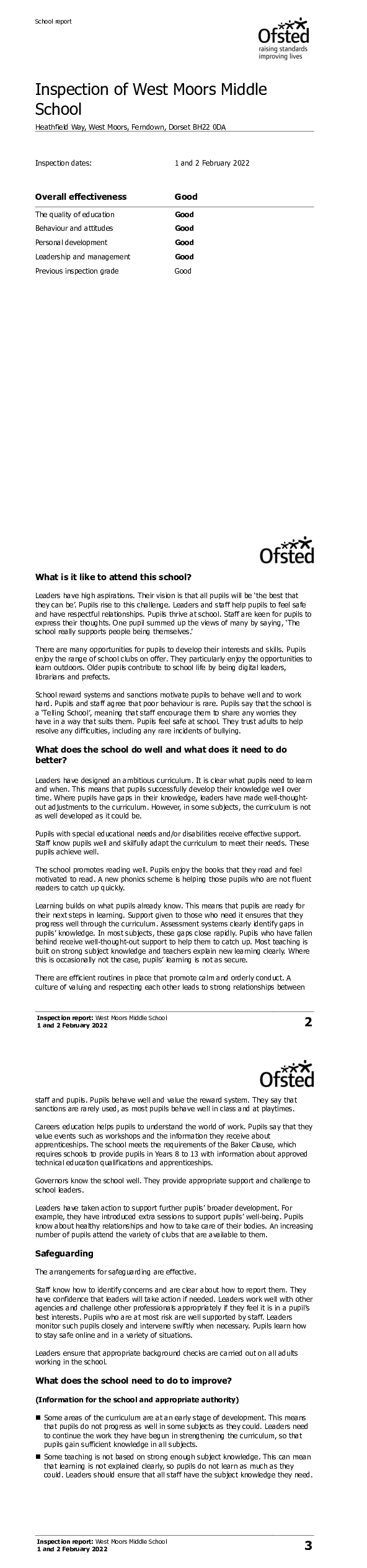 Ofsted Report - 1st-2nd February 2022