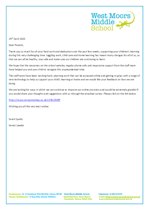 Online Provision Cover Letter - 07.05.2020