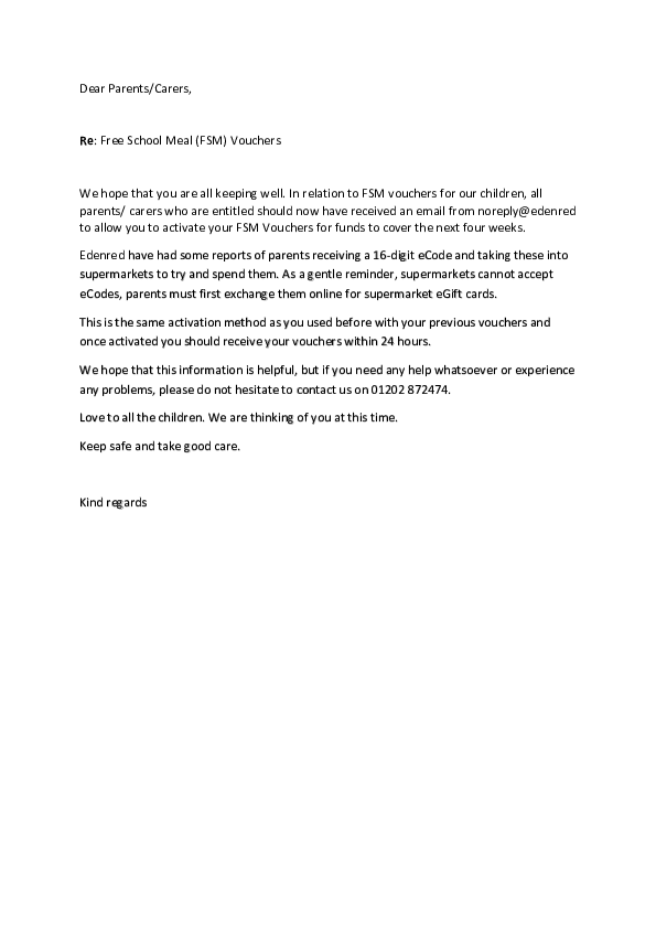 Parent Portal Message - 24.04.20
