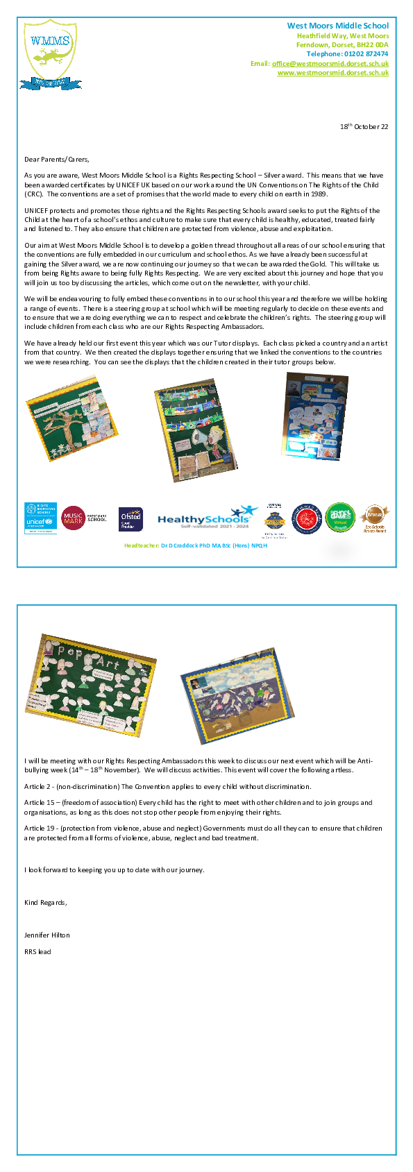Rights Respecting Gold Journey Letter - 21.10.2022