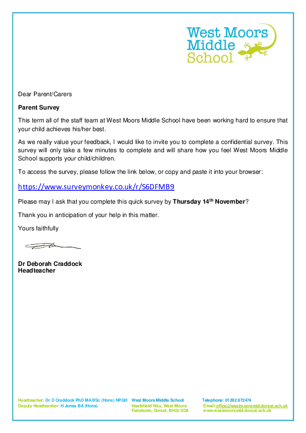 Survey Monkey Parent Letter