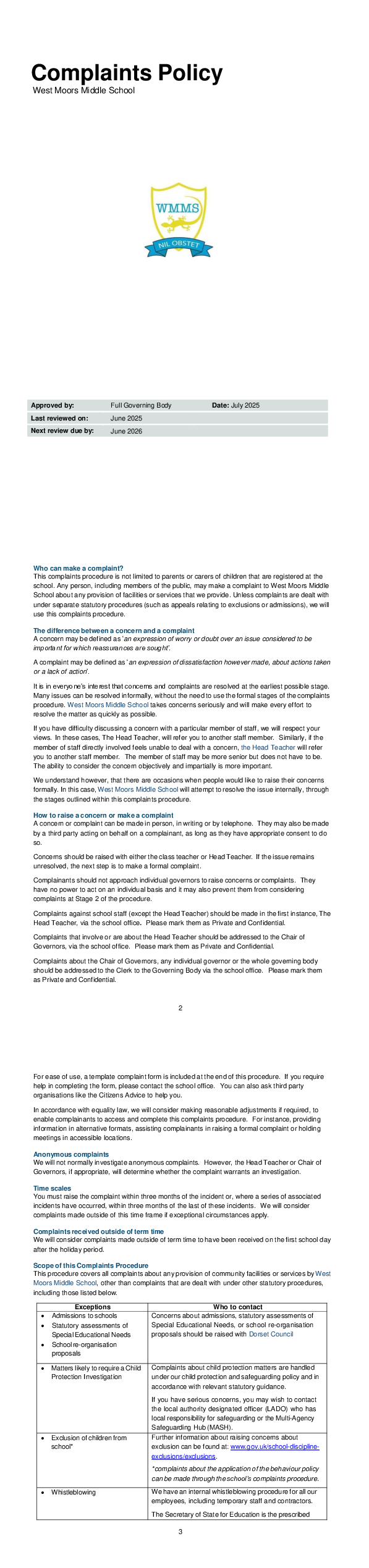 WMMS Complaints Policy