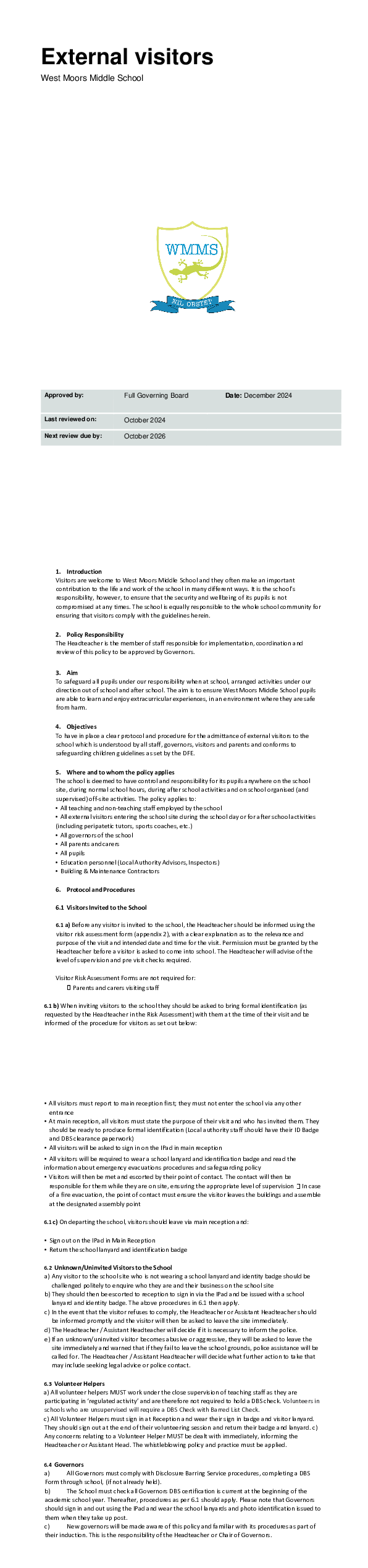 WMMS External Visitors Policy