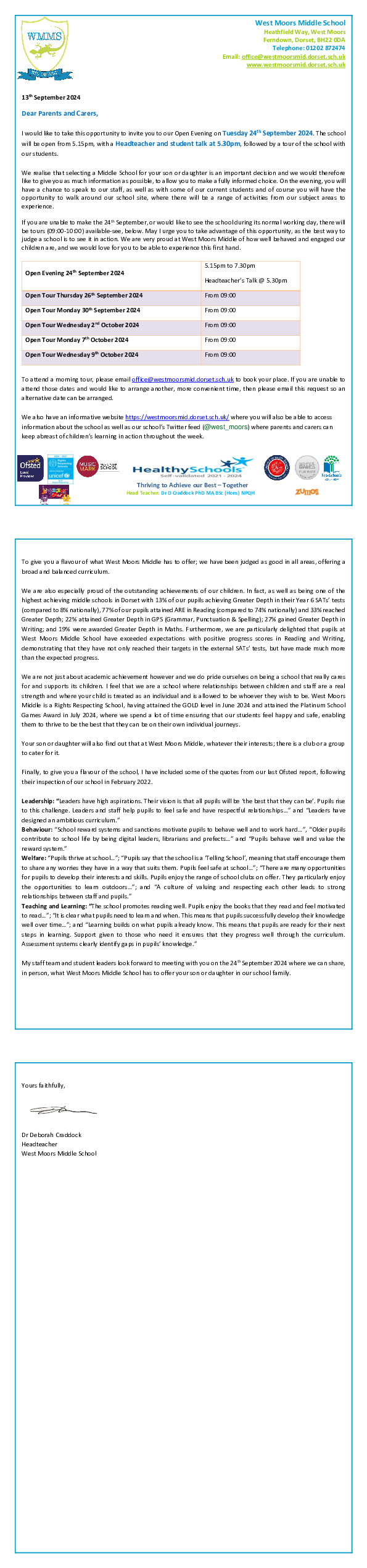 WMMS Open Evening Invite September 2024